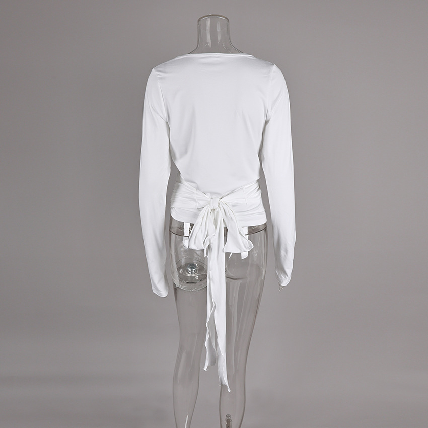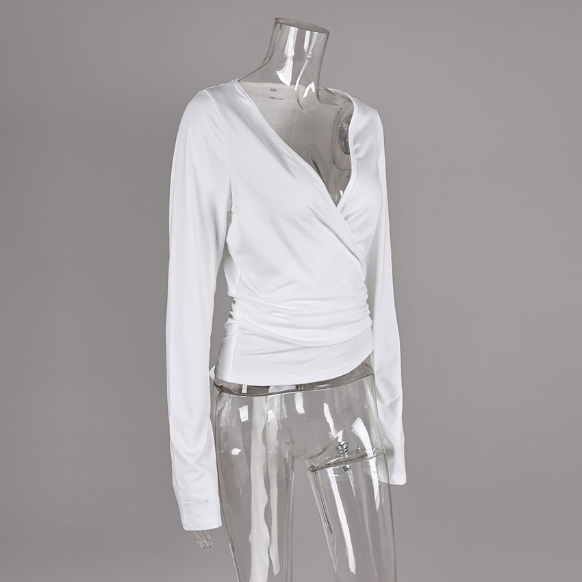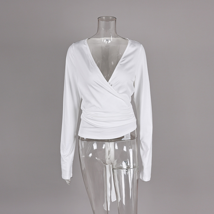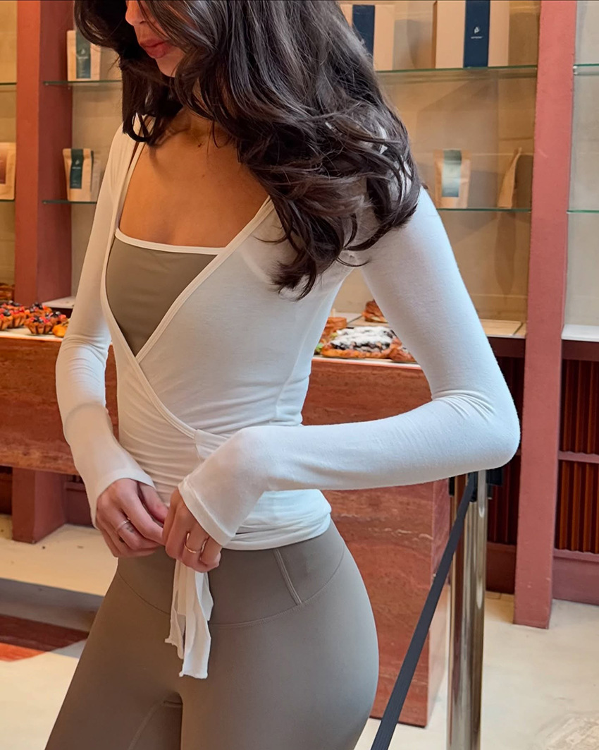 2025 New Autumn European And American Style V-Neck Long-Sleeved T-Shirt Design, Fashionable And Personalized Wrap, Slim-Fitting Pilates Top