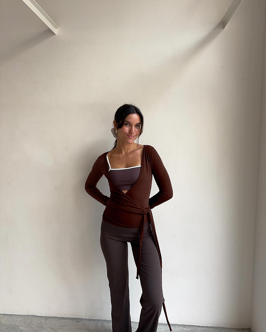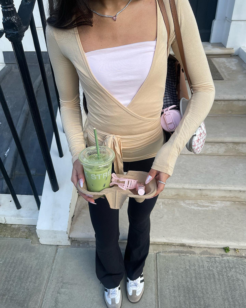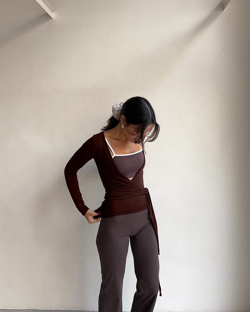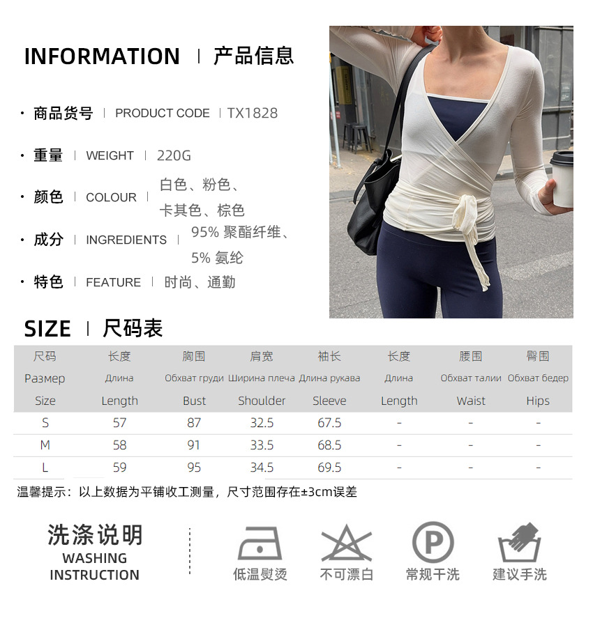 2025 New Autumn European And American Style V-Neck Long-Sleeved T-Shirt Design, Fashionable And Personalized Wrap, Slim-Fitting Pilates Top