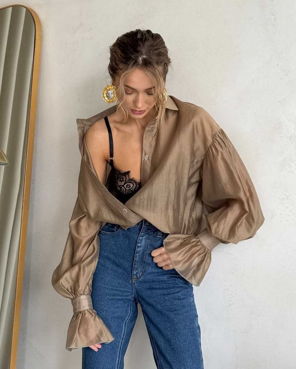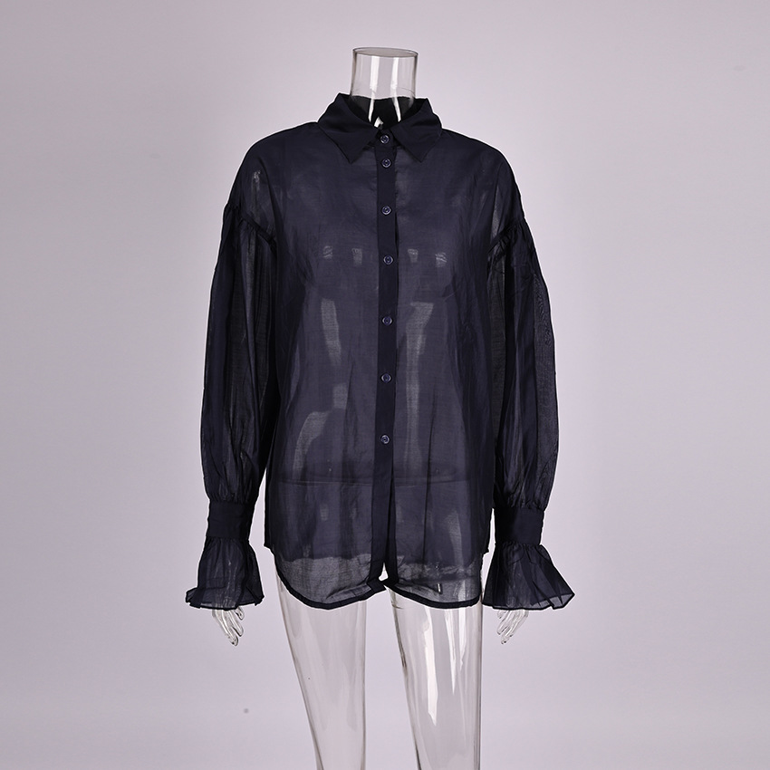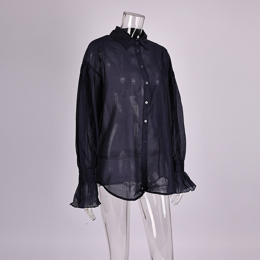 2025 New Autumn See-Through Long-Sleeved Shirts For Women With Design Sense, Personality, Fashionable Temperament, Casual European And American Commuting Shirts