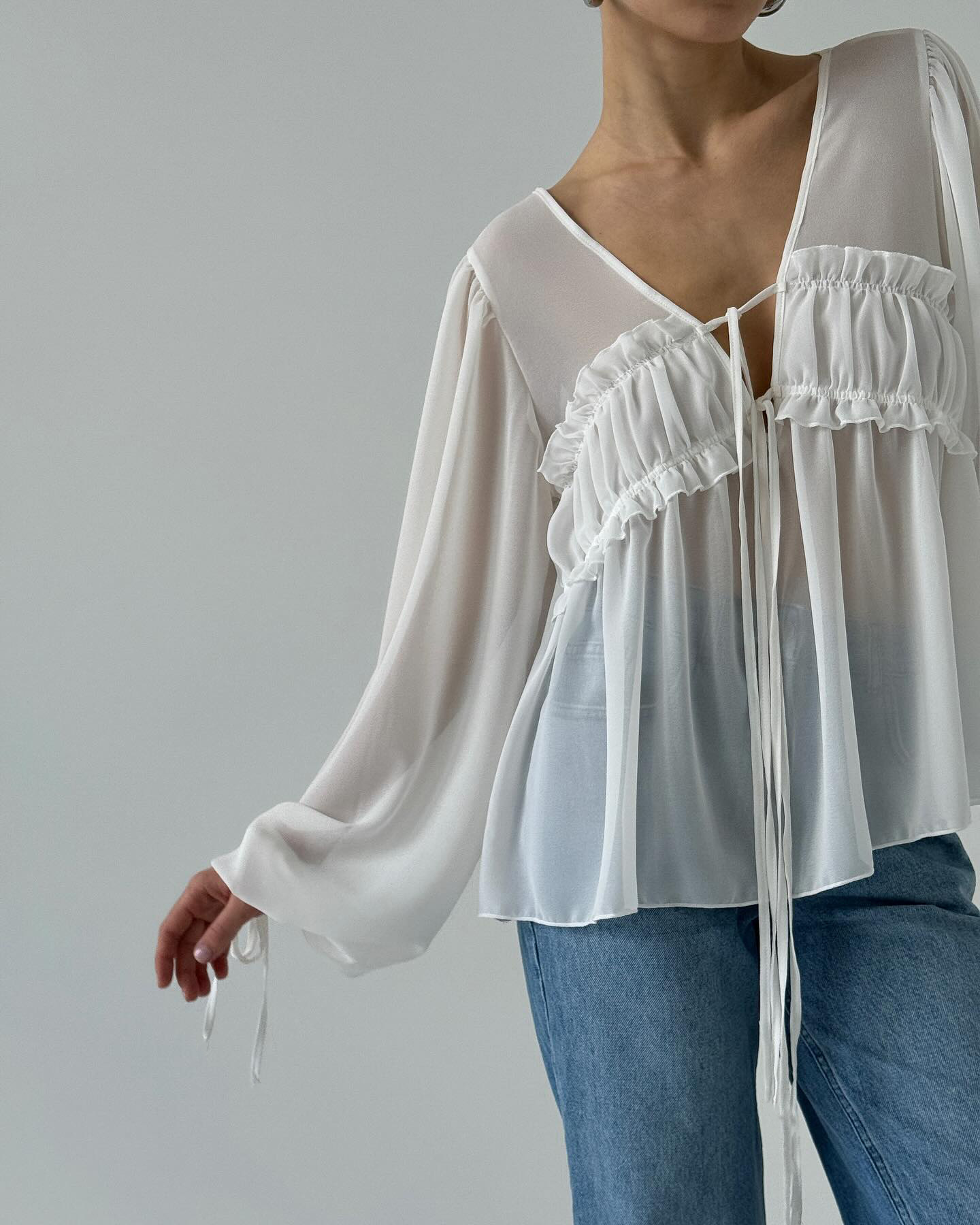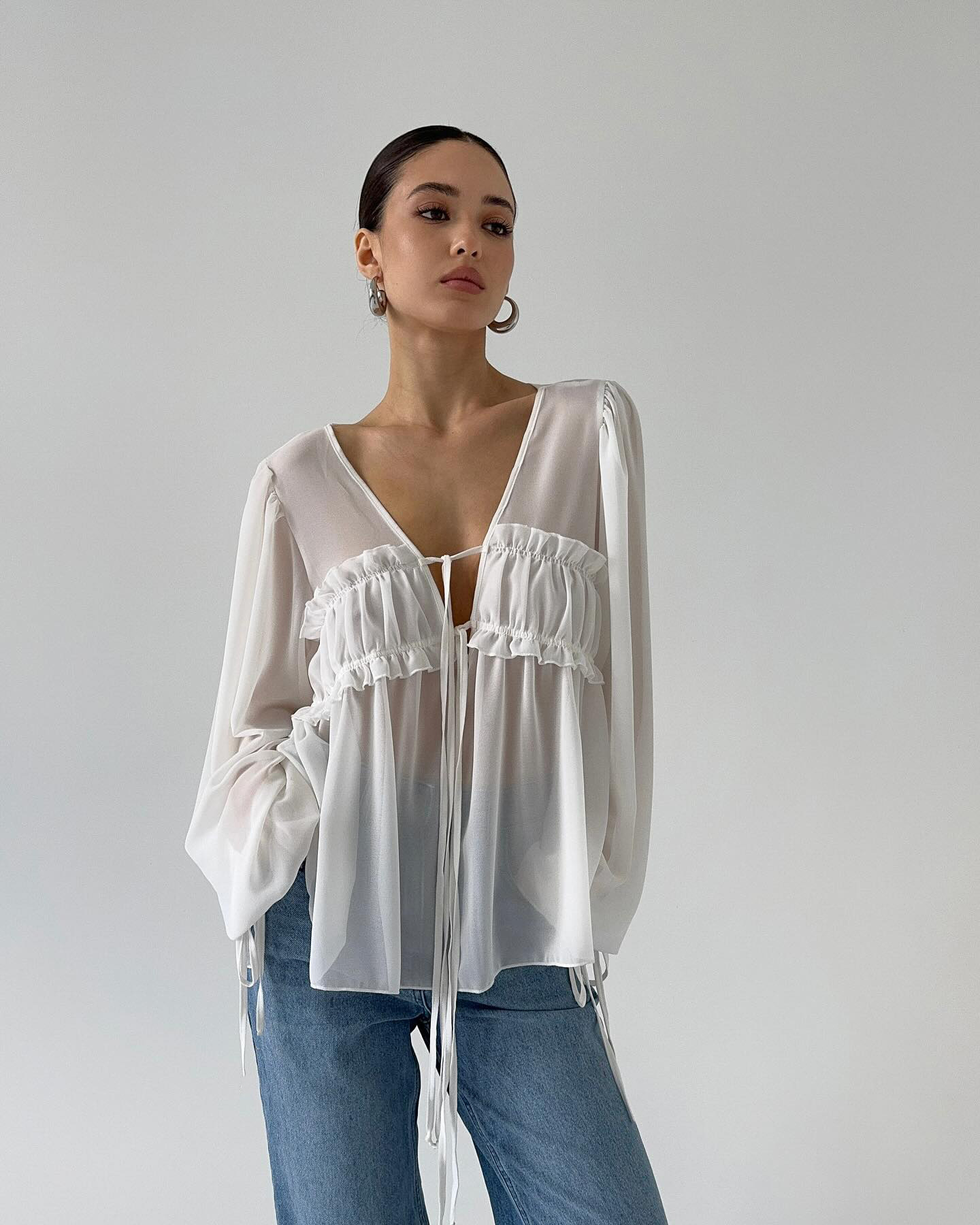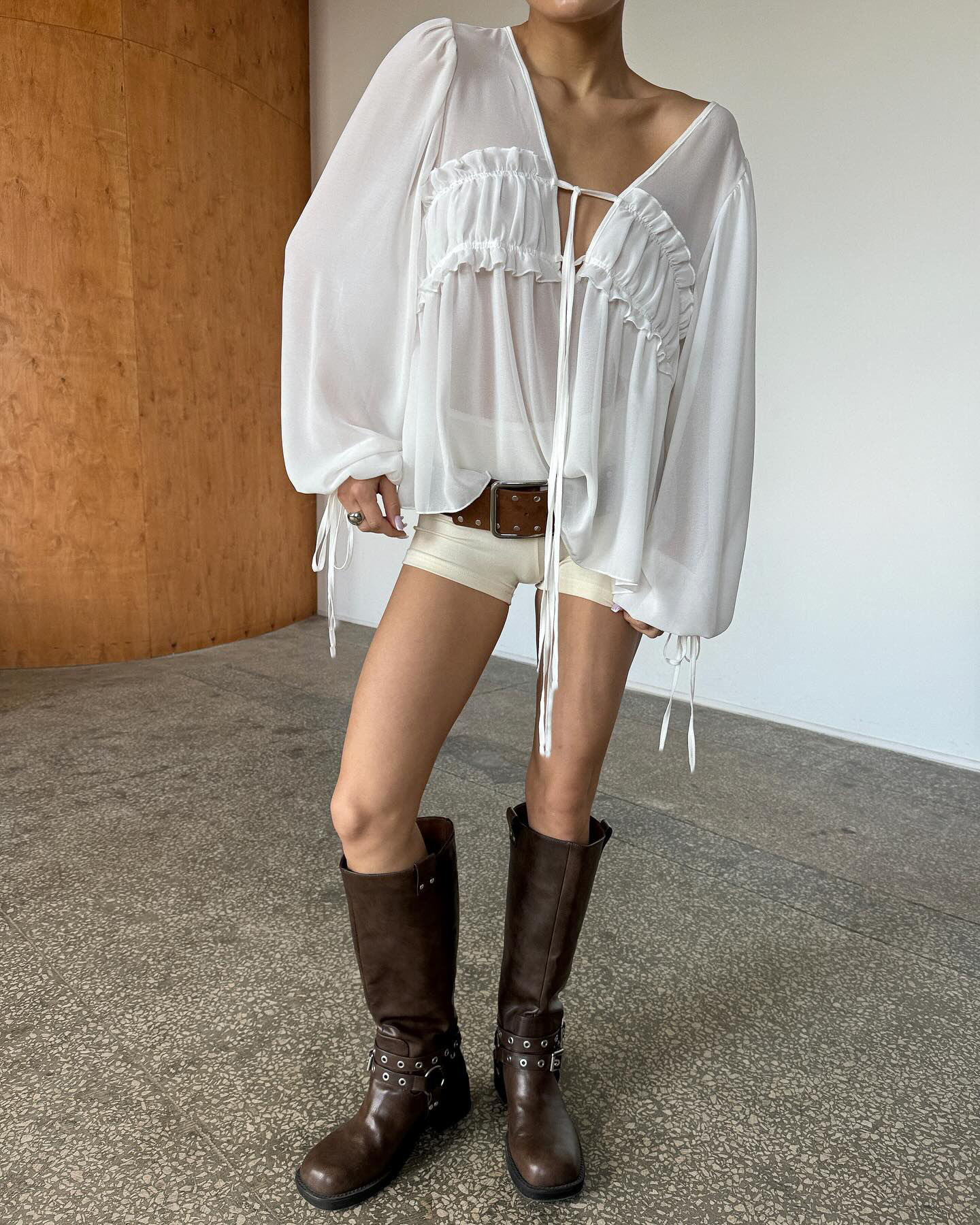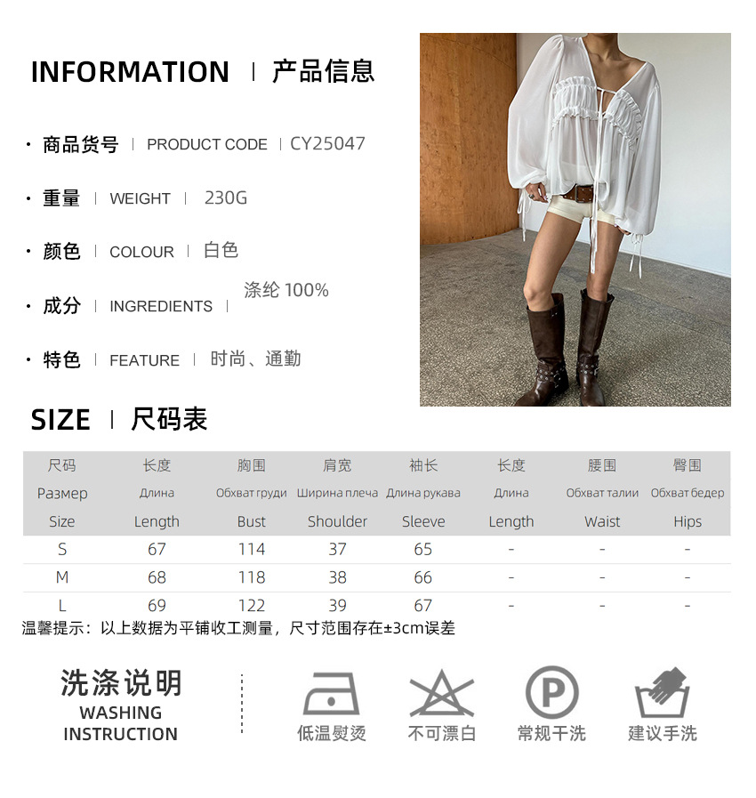 2026 New Summer Style V-Neck Pleated Fungus-Edged Lace-Up Shirt With Design, Temperament, Fashionable Commuting, European And American Cross-Border