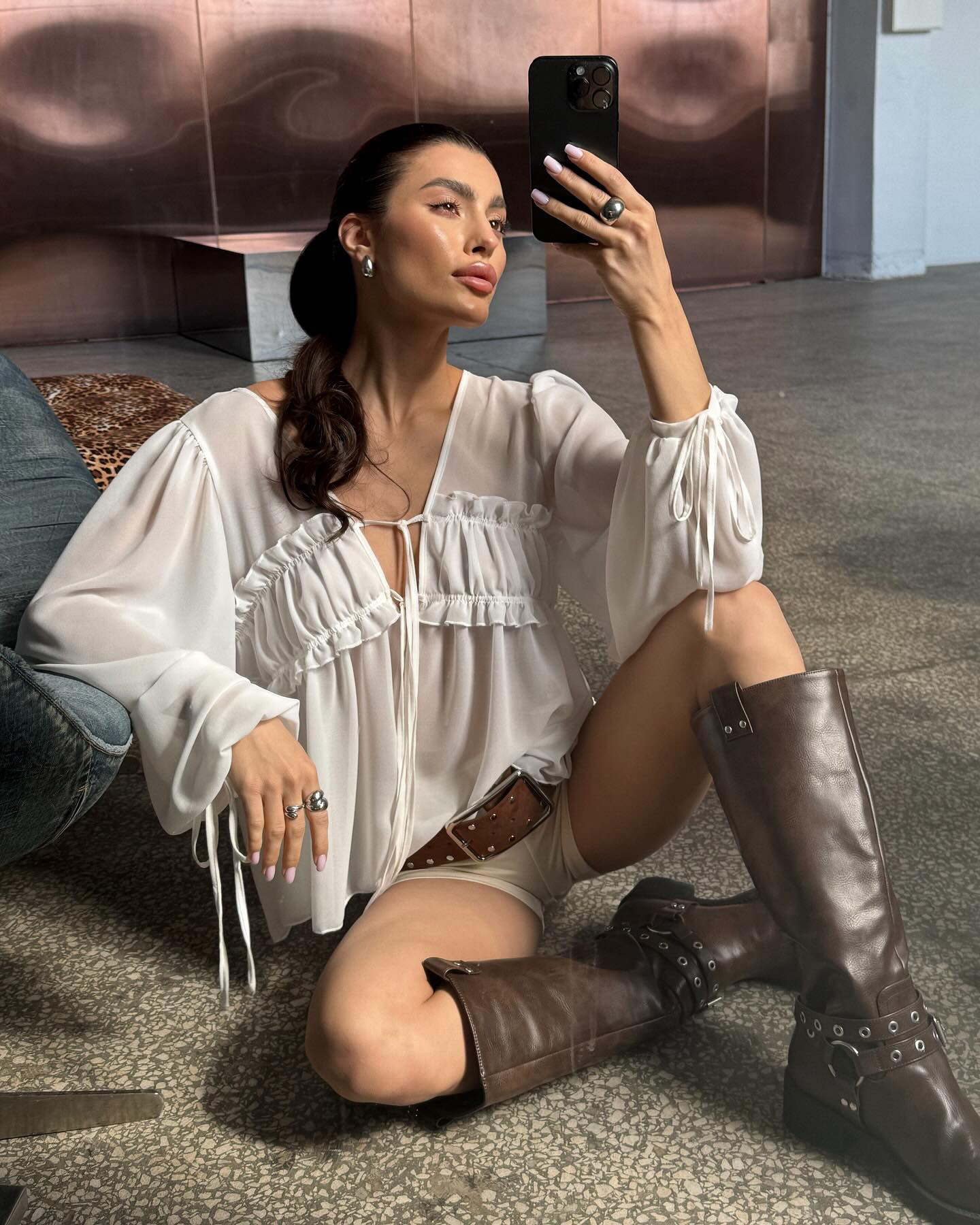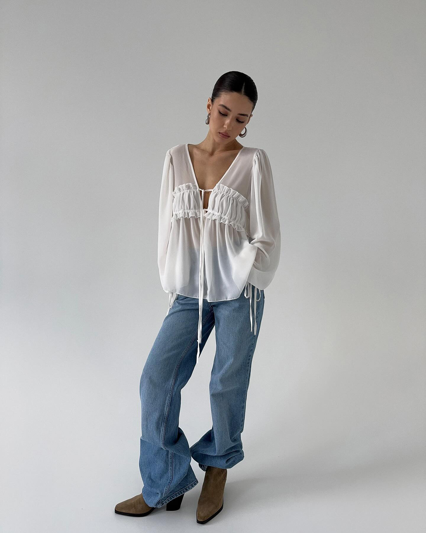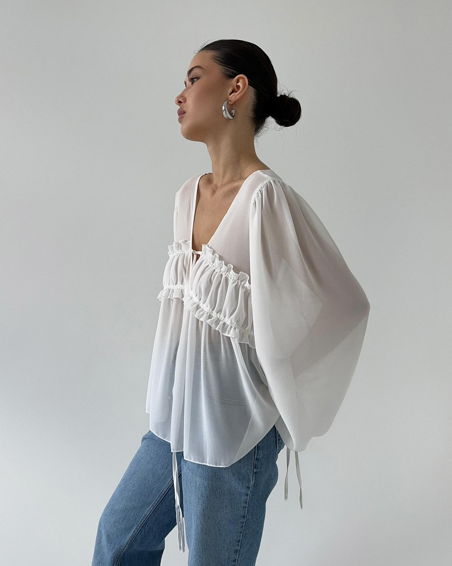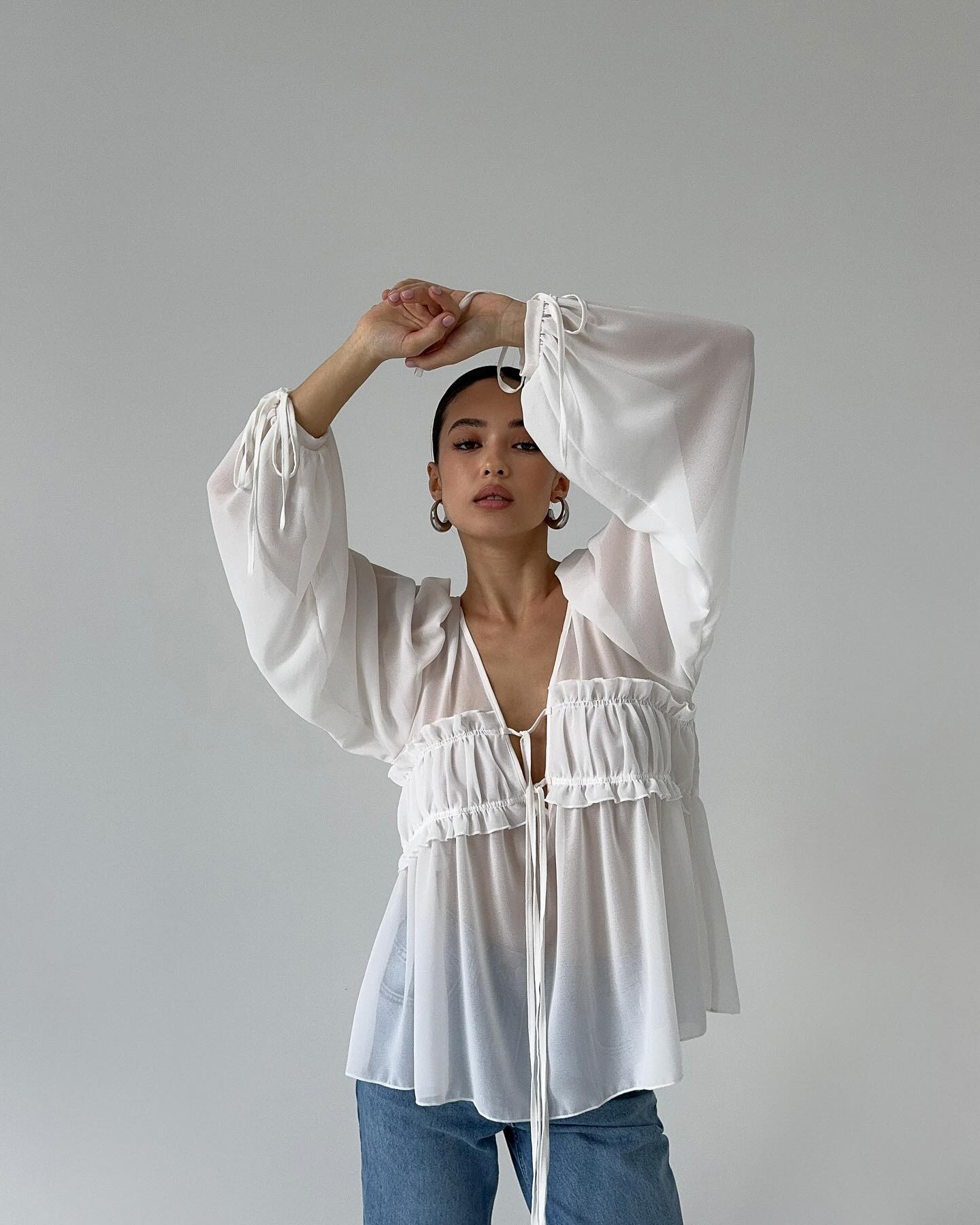 2026 New Summer Style V-Neck Pleated Fungus-Edged Lace-Up Shirt With Design, Temperament, Fashionable Commuting, European And American Cross-Border