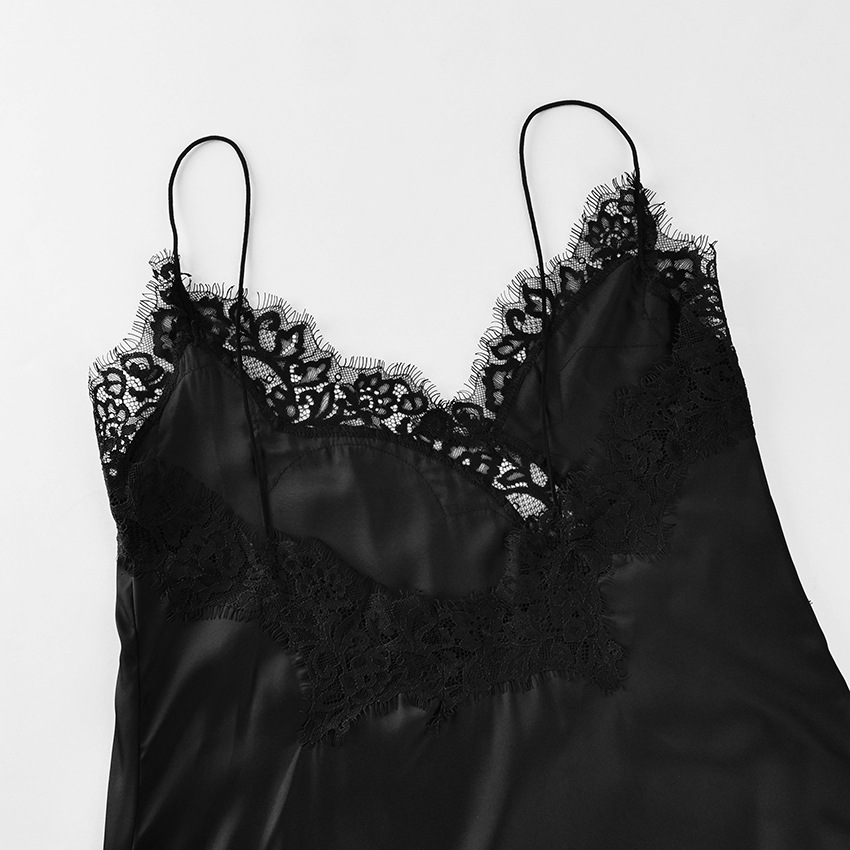 2026 Spring And Summer New Simulated Silk Lace Slit Inner Dress Design And Temperament Satin Satin Suspender Skirt